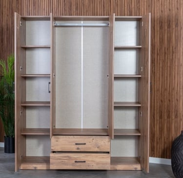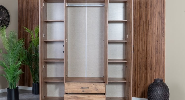 Modern tasarımlı, geniş iç hacimli gardıroplar.